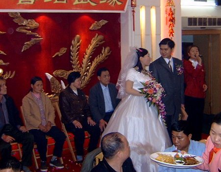 A Chinese wedding is not long, the parents of HeShiHen and DongMei greet the bride and groom with a time of greetings and pictures, and the couple is married.