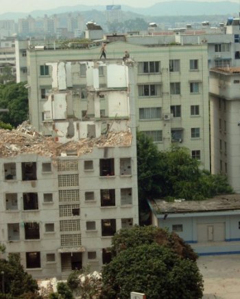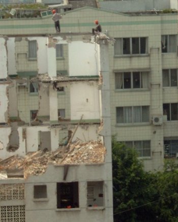 There are some things that really catch you attention. Look how this building is being manually torn town.