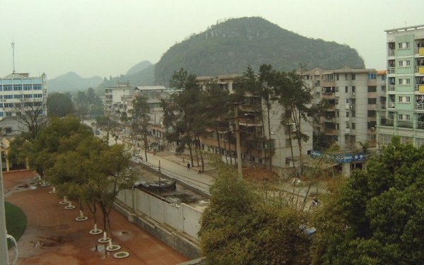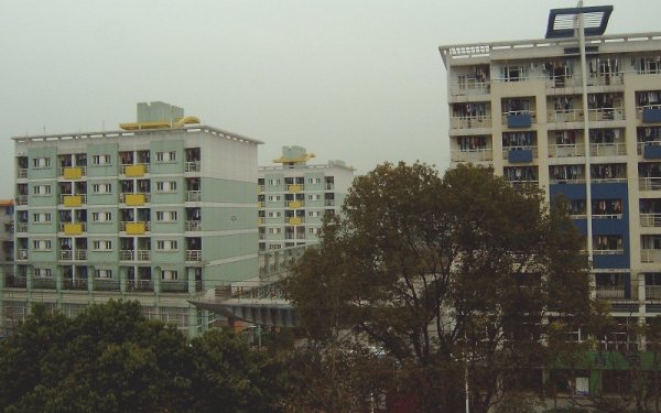 Here is the few out of my apartment window. A view of the back road and the dormatories of the students. It sometimes is a bit noisy, especially on Friday and Saturday nights.