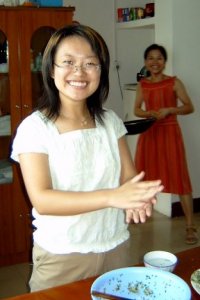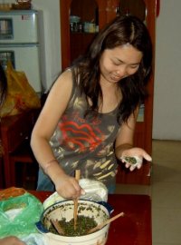 Well school is about out and I have not have not allowed students to know where I live or my phone number to give me privacy. Now I have all 100 students come for a dumpling, "jiaozi" party. This is one of 3 groups that came a day early to make dumplings.