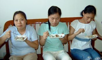 Look out, , here come some hungry students. Where are the dumplings, "jiaozi"?