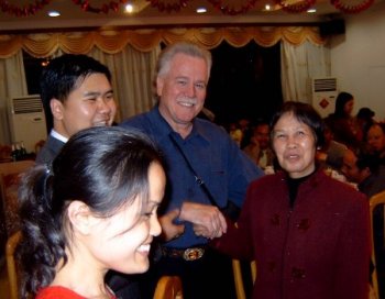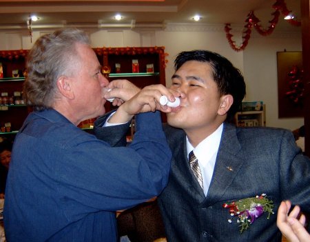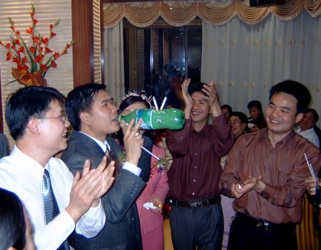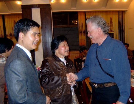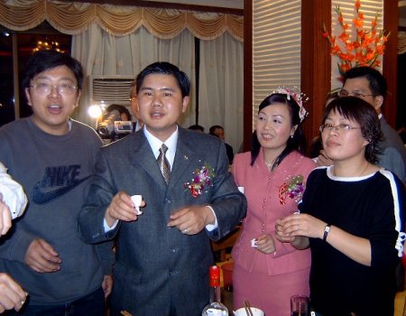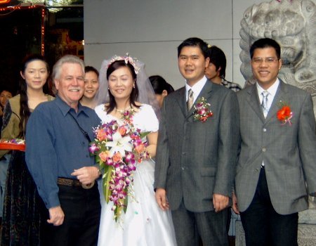 CaiRongShou and I are happy to have our picture taken with the bride and groom.