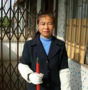 This smiley face lady keeps the outside of our apartments looking clean and moped all the time. I am happy to see her smile all the time.