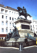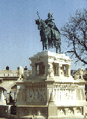 ![]() Buda & Pest Palace under constant repair (above) and the statue of St. Stephen (right) |